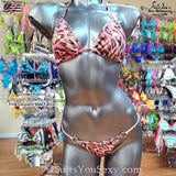 Scrunch Butterfly Bikinis made in unique animal print fabrics. These sexy little swimsuits are perfect for a photo shoot or a day at the beach!